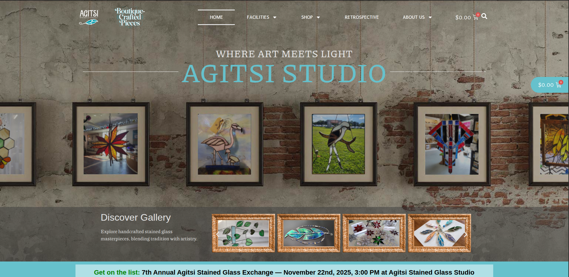 Agitsi is a handcrafted stained glass studio and shop, founded by a third‑generation artist driven by love, heritage, and light. They design and make custom glass pieces that transform sunlight into art — from suncatchers and lead panels to jewelry, decor, and gifts.
